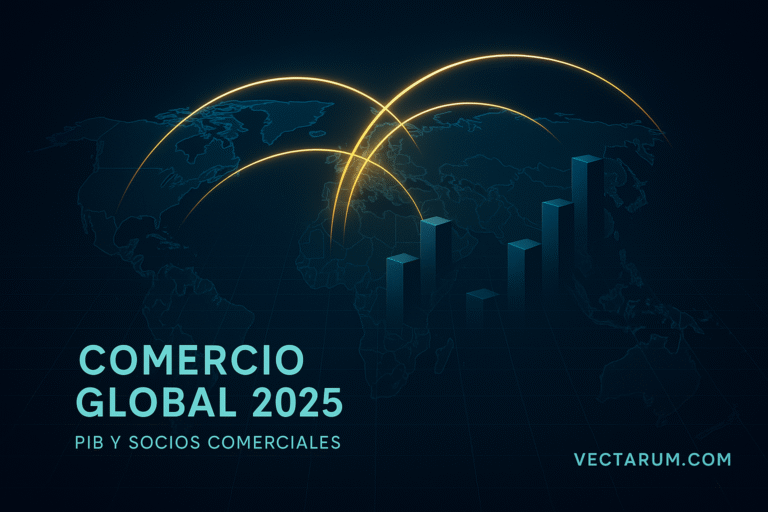 Este estudio en Vectarum.com mapea, con datos verificables, las 10 economías más grandes por PIB nominal (IMF, 2025) y sus 10 principales socios comerciales. Mostramos el peso porcentual de cada…